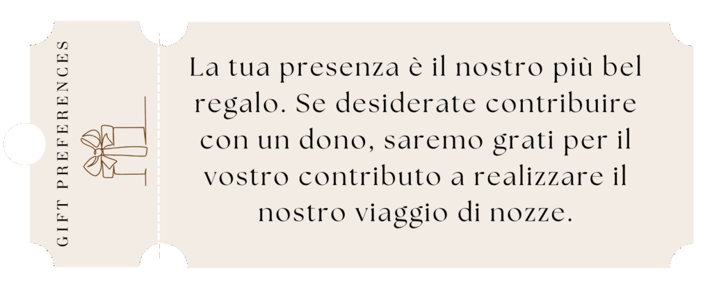 Nota cordiale:Chiediamo alle nostre gentili invitate di non indossare il bianco, colore riservato alla sposa.